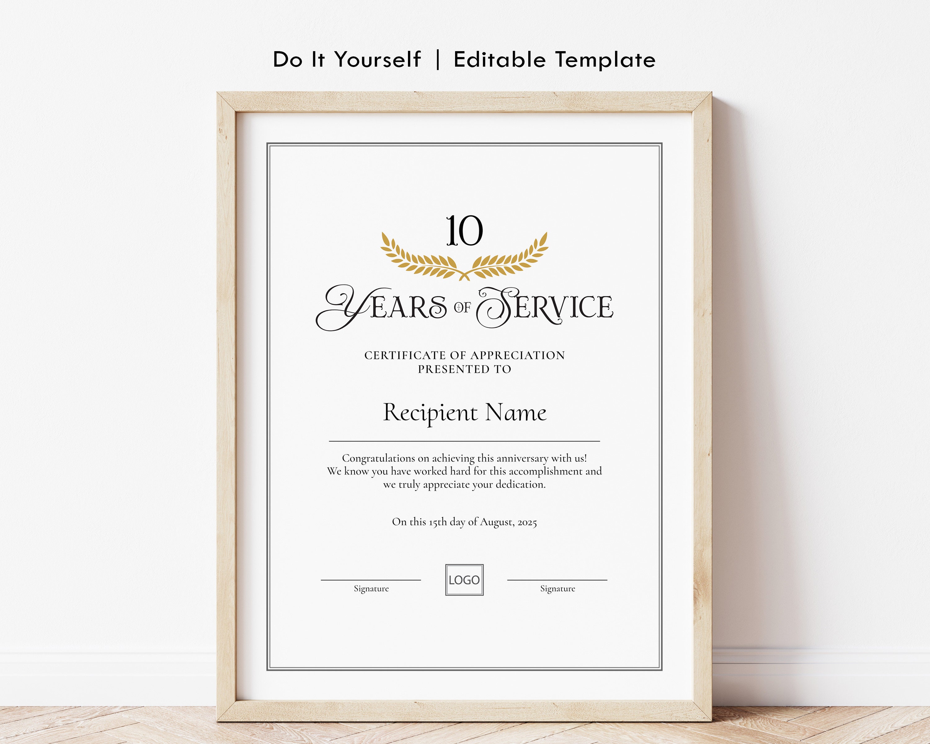 Source : blankcalendarpages.com10 Years of Service EDITABLE Certificate of Appreciation Template
